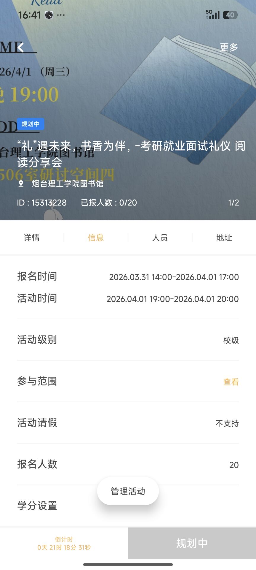 座位有限,登录《到梦空间》搜索“礼遇未来,书香为伴-考研就业面试礼仪 阅读分享会”报名或者直接于活动开始前10分钟到场签到。