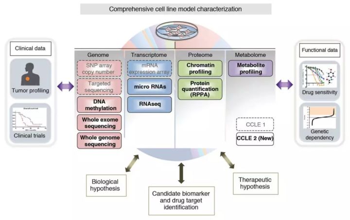 随着多组学测序技术和癌症精准医学向纵深发展,CCLE数据库也不断在癌细胞系数量和测序信息维度等方向上进行着更新。2019年5月9日,CCLE项目组在Nature上发表长文Next-generation characterization ofthe Cancer Cell Line Encyclopedia,报道了癌细胞系百科全书的重大更新。